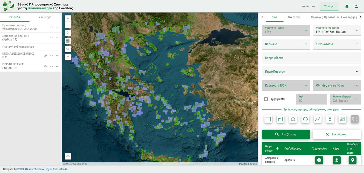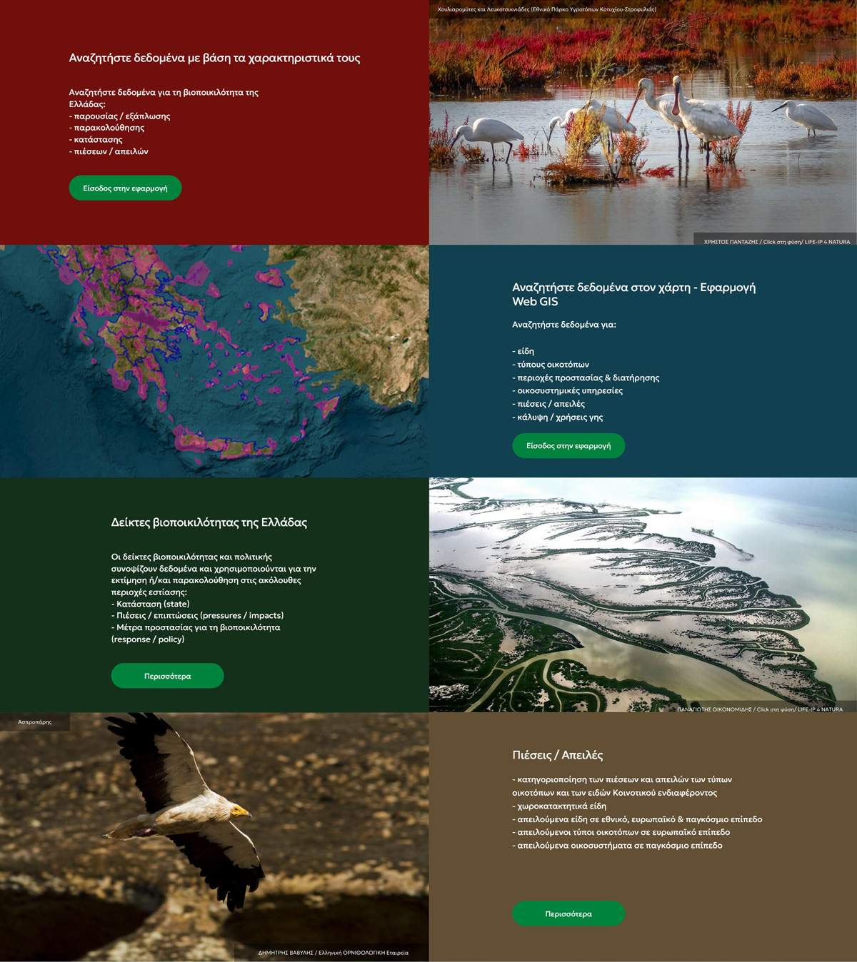 Το Εθνικό Πληροφοριακό Σύστημα για τη Βιοποικιλότητα της Ελλάδας δημιουργήθηκε στο πλαίσιο του έργου LIFE EL-BIOS (LIFE20 GIE/GR/001317) «hELlenic BIOdiversity Information System: an innovative tool for biodiversity conservation». Το Έργο συγχρηματοδοτείται από το Πρόγραμμα LIFE της Ευρωπαϊκής Ένωσης και υλοποιείται με συντονιστή το Πράσινο Ταμείο και συνδικαιούχους τον Οργανισμό Φυσικού Περιβάλλοντος και Κλιματικής Αλλαγής (Ο.ΦΥ.ΠΕ.Κ.Α.), το Αριστοτέλειο Πανεπιστήμιο Θεσσαλονίκης/Τμήμα Αγρονόμων Τοπογράφων Μηχανικών, το Μουσείο Φυσικής Ιστορίας Γουλανδρή/Ελληνικό Κέντρο Βιοτόπων – Υγροτόπων (ΜΓΦΙ/ΕΚΒΥ), το Πανεπιστήμιο Θεσσαλίας/Τμήμα Ηλεκτρολόγων Μηχανικών και Μηχανικών Υπολογιστών, το Ευρωπαϊκό Θεματικό Κέντρο (ETC – UMA) του Πανεπιστημίου της Μάλαγα στην Ισπανία και την εταιρεία ΟΛΥΜΠΟΣ Εταιρεία Μελετών.